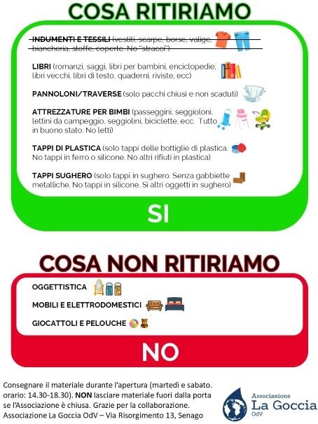 La Goccia avvisa che in occasione della campagna panettoni fino a gennaio NON si ritirano più VESTITI